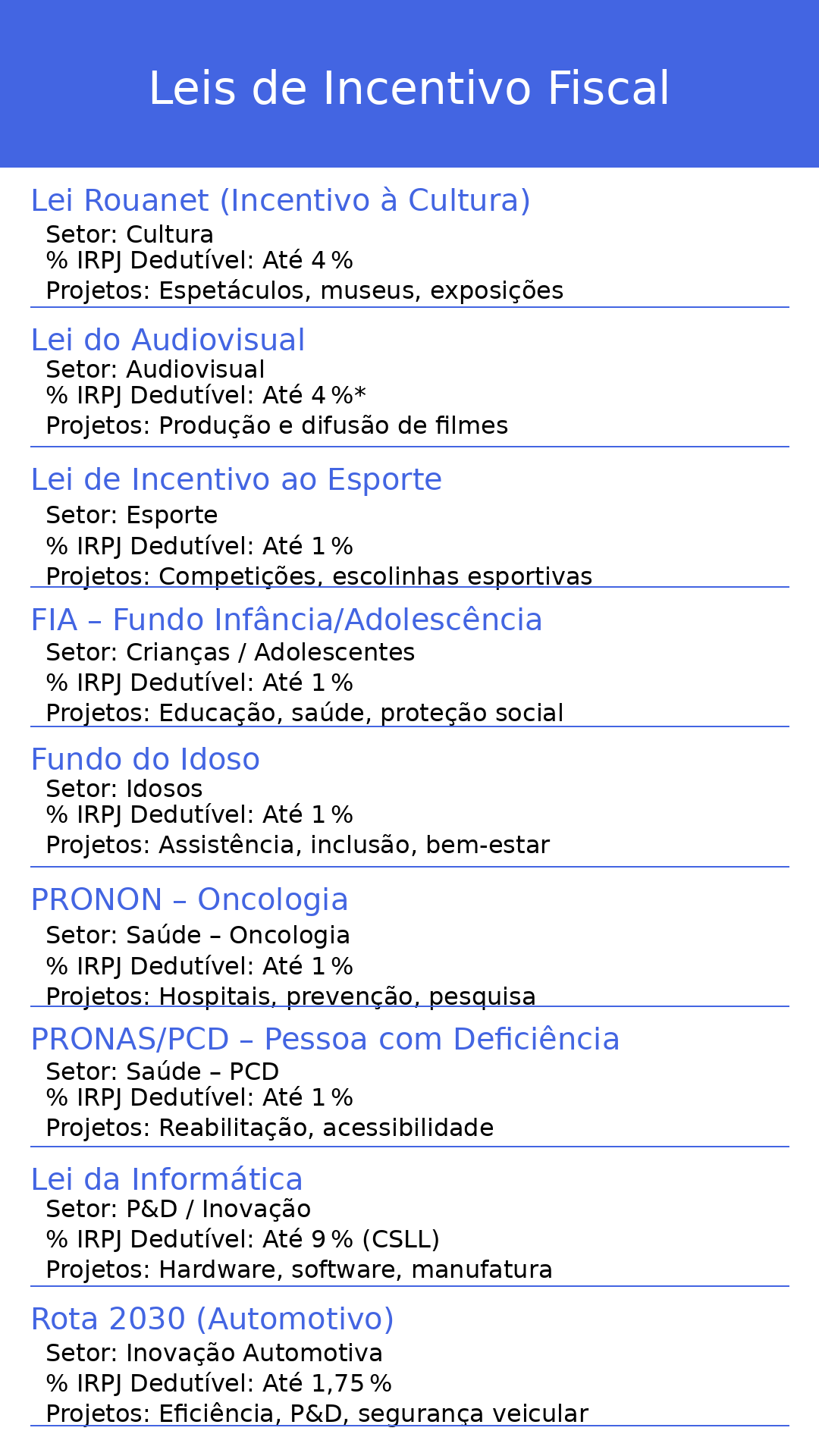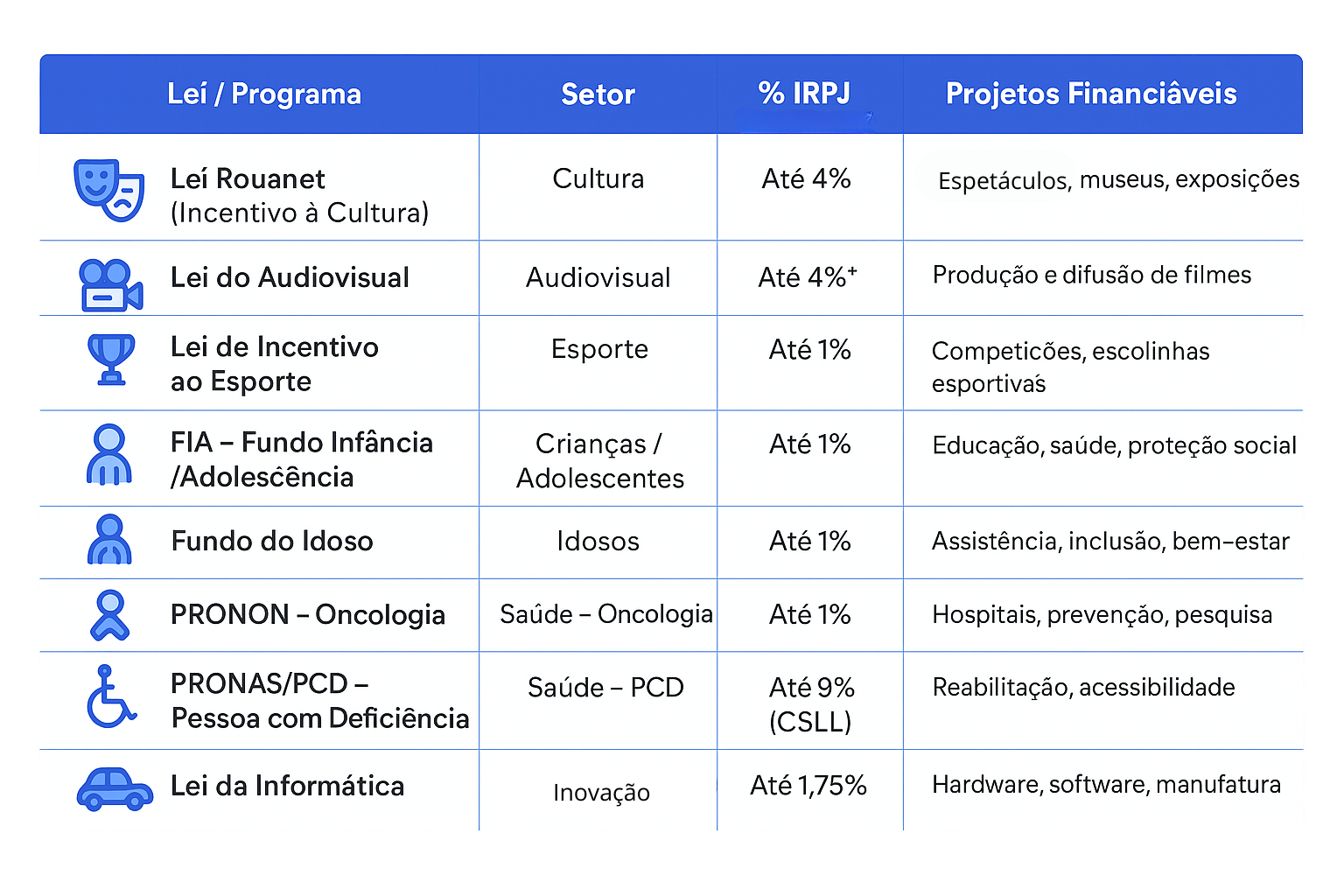 Empresas tributadas pelo regime de Lucro Real podem aproveitar incentivos fiscais para apoiar projetos sociais, culturais, esportivos e de saúde, contribuindo para o desenvolvimento social e cultural do Brasil.